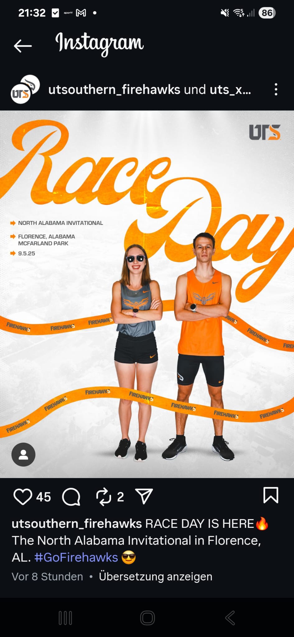 Am Freitagmorgen stand für Luca Neumeister (WGL/PostSG) erneut ein Wettkampftag an. Mit seinem Team, den Firehawks der University of Tennessee Southern, startete er beim University of North Alabama Invitational in Florence. Für Luca gab es in dieser Woche ein besonderes Highlight: Er war auf dem offiziellen Race-Day-Poster abgebildet, gemeinsam mit einer Teamkollegin.