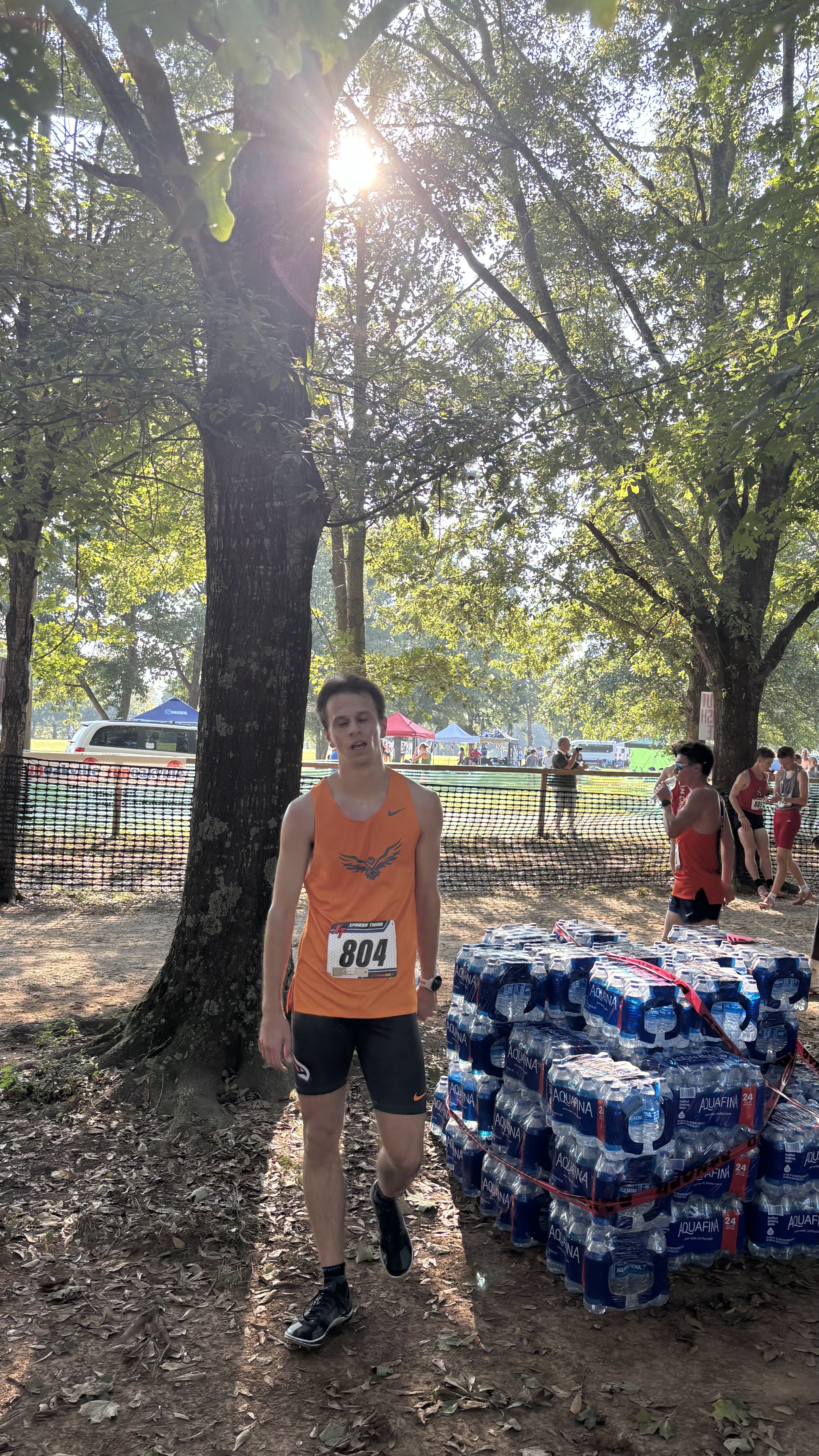 Der Startschuss fiel bereits um 7:45 Uhr, das hieß sehr früh aufstehen. Der Team-Bus verließ den Campus schon um 5:30 Uhr - viel zu früh für ein richtiges Frühstück. Gelaufen wurde im McFarland Park, einer malerischen Strecke direkt am Tennessee River. Der 8-km-Kurs, die Standarddistanz für NAIA-Meisterschaften, führte durch eine baumgesäumte Landschaft und war insgesamt relativ flach und schnell. Luca beschrieb die Strecke als „interessant“, aber die schwüle Luftfeuchtigkeit machte den Läufern trotz der frühen Startzeit ordentlich zu schaffen. Das Teilnehmerfeld konnte sich sehen lassen: Starke NAIA-Teams trafen auf mehrere NCAA-Division-I- und -II-Programme - beste Voraussetzungen für ein schnelles Rennen.