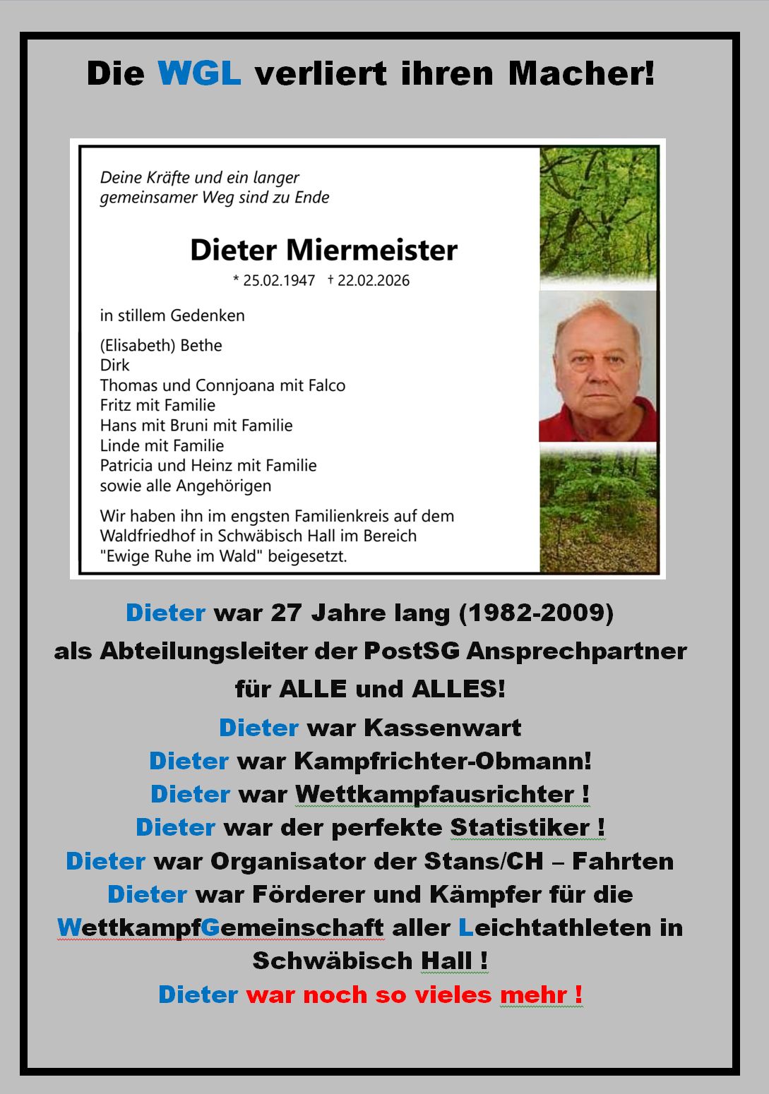 Dieter Miermeister 25.02.1947 - 22.02.2026