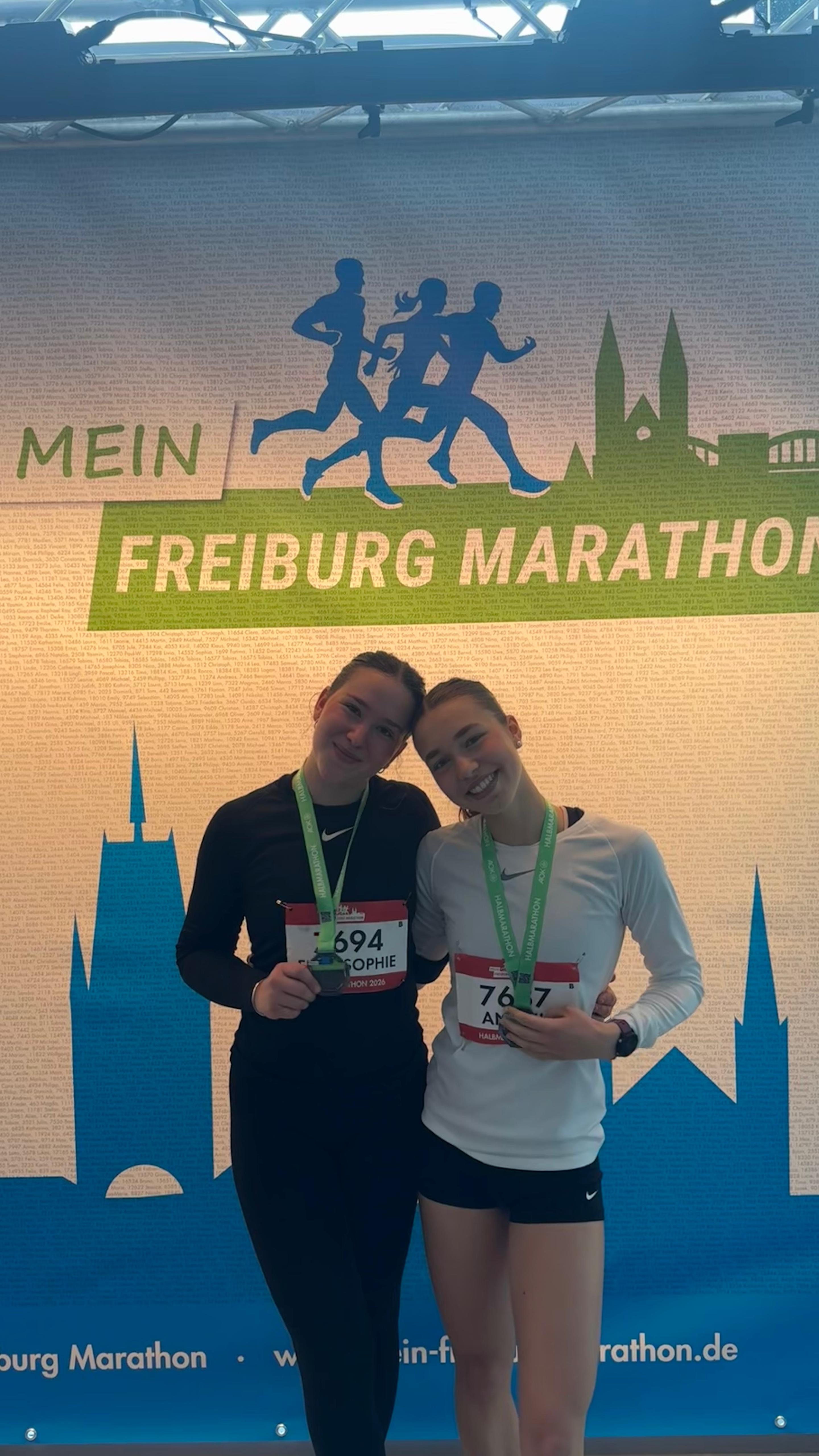 Am Samstag ging es dann in Freiburg weiter: Elisa Dowerk stand dort gemeinsam mit ihrer Trainingspartnerin Anouk Schöller, die sie bei ihrem Debüt die gesamte Strecke begleitete, am Start. In einem Feld von über 3.700 Läuferinnen und Läufern ging es für Elisa vor allem darum, ins Ziel zu kommen - etwas Trainingsumfang hatte noch gefehlt. Doch genau das gelang ihr souverän: In 2:06:25h (exakt 6:00 min/km) erreichte sie das Ziel, mit Anouk stets an ihrer Seite.