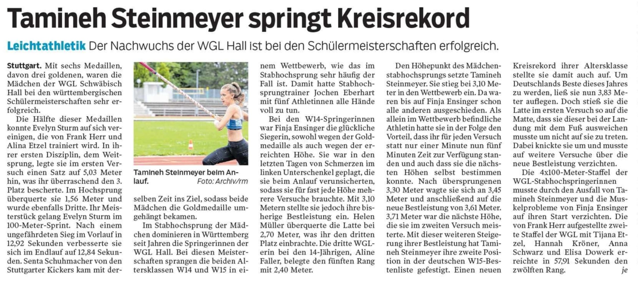 Auch die Stabhochspringerinnen der WGL Schwäbisch Hall mit ihrem Coach Jochen Eberhart waren am vergangenen Wochenende unterwegs, und zwar in Oberhaugstett im Schwarzwald.